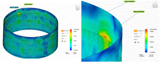 For instance, storing a volume of product that exceeds the tank’s maximum design capacity is a clear example of overloading [10]. This situation can lead to increased stresses in the tank shell and bottom, potentially causing them to deform or even rupture. Similarly, overfilling an oil tank beyond its intended capacity has been identified as a potential cause of tank collapse due to the excessive pressure exerted on the tank walls [54]. Failures can also occur due to internal overpressure, where the pressure inside the tank exceeds its design limits, leading to structural damage such as uplift deformation or failure of welded connections [55]. Therefore, it is crucial for the safe operation of storage tanks to strictly adhere to the specified filling limits, pressure ratings, and operational procedures to avoid subjecting the tanks to loads beyond their design capabilities. Operating within these limits helps to ensure that the stresses on the tank material remain within acceptable levels, thereby minimizing the risk of mechanical failure and maximizing the tank’s service life.