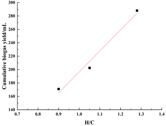 Linear correlation between cumulative gas production and H/C atomic ratio.