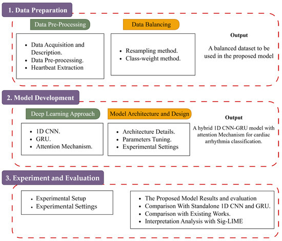 The proposed system consists of dataset preparation, data preprocessing, and the deep learning architecture that will be utilized for cardiac arrhythmia classification. The article pipeline is shown in Figure 1.