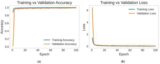 Against the CNN-BiLSTM classifier developed by Hassan et al. [], the proposed model achieves a 1.02% higher accuracy, a 3.30% increase in sensitivity, and a substantial 8.79% improvement in specificity. Similarly, when compared to the CNN-LSTM approach reported by Essa et al. [], our model shows a 3.12% improvement in accuracy, a notable 36.23% gain in sensitivity, and a 4.21% increase in specificity.