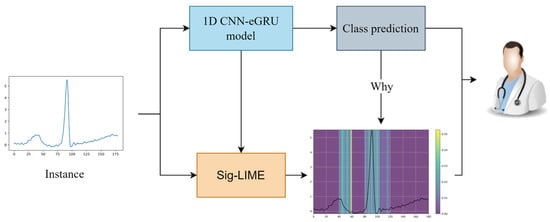 An application of the Sig-LIME explanation technique to a 1D CNN-eGRU model used for classifying cardiac arrhythmia.