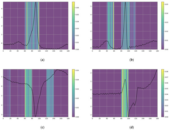 Diverse arrhythmia types explored through Sig-LIME explanation: (a) class F, (b) class N, (c) class S, (d) class V.