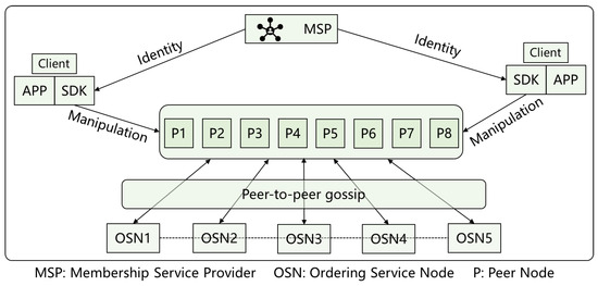 System implementation at the inter-enterprise level. Note: Peer refers to the blockchain node running on the host that executes the production monitoring and equipment management functions. The peer node is responsible for processing various operations, such as transaction requests and ledger data, and verifying the success of operations on the blockchain. Orderer refers to the blockchain node running on the host that performs the product order management, production plan, process control, and quality management functions. The Orderer node is responsible for packaging the resulting transaction. The generated block is returned to the peer node for synchronizing the shared ledger.