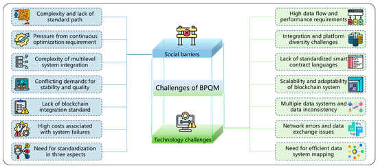 As BPQM systems are still in the developmental stage, there will be a prolonged period of coexistence and integration challenges with traditional quality management systems. As shown in Figure 12, there are numerous social barriers and technology challenges involved in properly selecting, designing, deploying, using, and updating blockchain solutions within PQM systems to fully unlock their potential.
