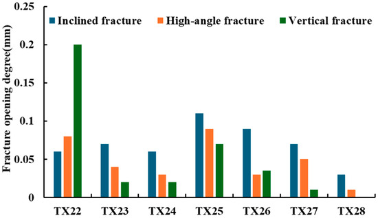 Bar chart of effective fracture open degree statistics for different sand groups in Xu-2 Formation.