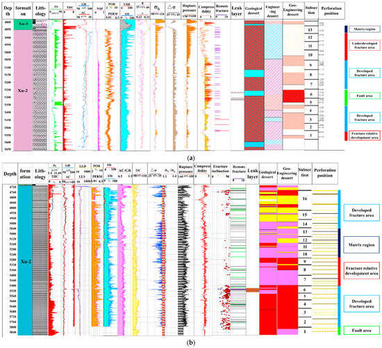 Fracturing stimulation zone division for well Xin 8-5H (a) and well Xinsheng 204-1H (b).