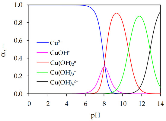 where co[Cu(II)] is the initial Cu(II) concentration and Ksp is the solubility product constant of Cu(OH)2, Ksp = 2.20∙10−20 [71].