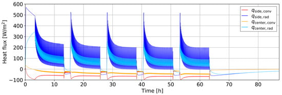 The calculation of view factors was performed with pyviewfactor [38], a Python package that utilizes PyVista [37] functionalities, such as ray tracing, which was used for checking the shadowing of the cells. The calculated view factors subsequently used in Equation (32) are listed in Table 1.