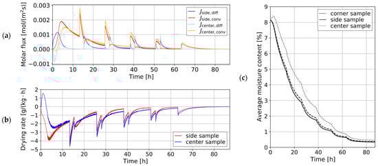 While the results of those models are in good agreement with the experimental values, it is physically inconsistent for the diffusion coefficient, as an intrinsic material property, to depend on sample dimensions such as thickness. As noted in [10,11,12], this is a clear indicator that the drying process cannot be fully described by Fick’s law alone. García et al. [13] further showed that this thickness dependence is not a consequence of interlayer spaces or voids, but rather a compensation for inaccuracy of the used diffusion model.