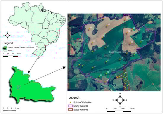 All samples were collected by simple sampling at a depth of 0–20 cm, using an auger, according to the methodology described by the Brazilian Agricultural Research Corporation [