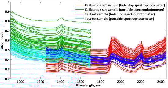 Figure 2). Each sample was scanned in triplicate, resulting in a total of 63 spectra for calibration and 30 for prediction.