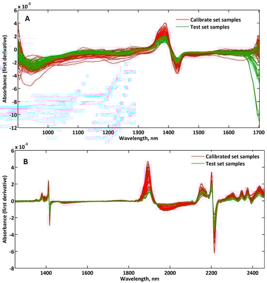 To develop the calibration models for both methodologies, different tools of preprocessing and their combinations were used, such as standard normal variate (SNV), multiplicative scatter correction (MSC), and first and second derivatives (width = 15, polynomial order = 2) with Savitzky–Golay smoothing filter.
