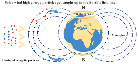 Solar wind energetic particles enter the Earth’s magnetic field lines [38].