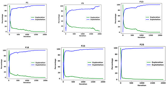 The SSA directly addresses the exploration flaw by introducing a stochastic, hierarchical leader–follower dynamic that promotes broader and adaptive exploration. SSA’s design mitigates the deterministic and localized behavior of PLO through the exploration strategy of SSA in Equation (19). Furthermore, the adaptive step size , decreases gradually over iterations, ensuring that the algorithm focuses on exploration in the early stages and transitions seamlessly to exploitation as the search progresses.