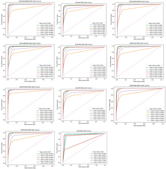ROC–AUC plots of ELM-PLSCO and Compared Models.