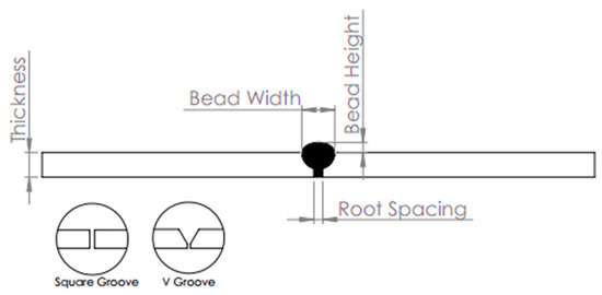 It is worth mentioning that, during the dataset development, the welder set these parameters and then measured the dimensions. Therefore, this relationship is only valid for the process and material specified. The geometrical welding parameters from the inputs are shown in Figure 4 with the welded zone in black.