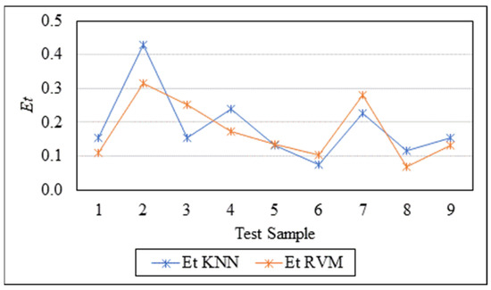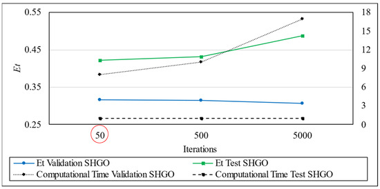 Although Et is calculated for the validation and testing phases, it is important to emphasize that the validation phase is responsible for defining the ANN architecture, while the testing phase is responsible for quantifying the accuracy of the predictions with the parameters set by the previous phase.