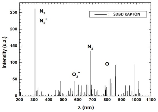 Additionally, spectroscopic characterization of the plasma was carried out using an Ocean Optics SB2000 spectrometer (Ocean Insight, Orlando, FL, USA) to analyze the emitted optical spectrum and identify the main ionized species. This analysis is essential for understanding the efficiency of the energy transfer between the electric field and the surrounding air flow.