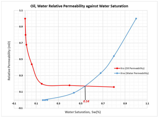 Oil-Water Relative Permeability Curves against Water Saturation.