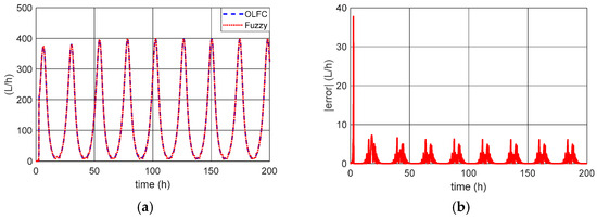 Figure 6b shows that the proposed fuzzy control efficiently reproduces the control signal obtained with OLFC control, and the choice of triangular functions in fuzzification was adequate (Figure 6a). The use of triangular functions is relevant when seeking lower computational costs and applications in embedded or real-time systems.