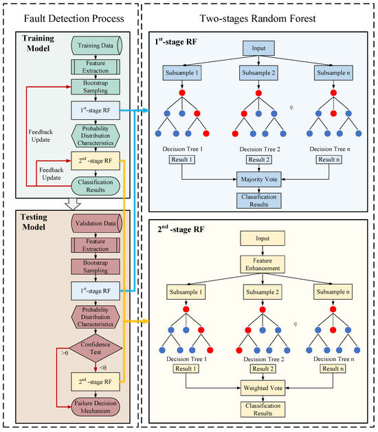 In the 2nd-stage RF, the probability distribution vector is first embedded into the original data for enhancement, as shown in Equation (3). The new enhanced set data is used as input for the 2nd-stage RF.