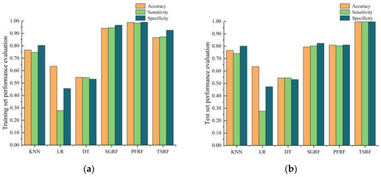 (a) The training set performance of six comparative algorithms; (b) The test set performance of six comparative algorithms.