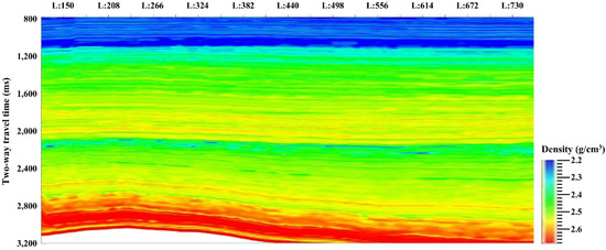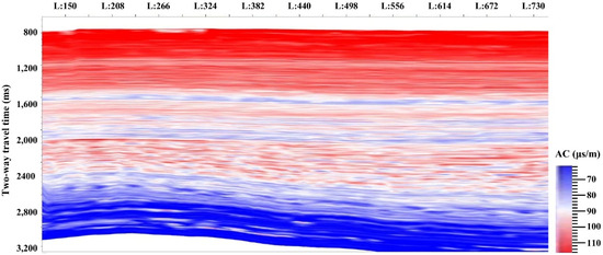 In the process of seismic velocity inversion, the logging data types include acoustic and density logging data [18]. Before inversion, the distortion points in the logging curves were required to be removed for those outside the practical range of the logging parameters, which was called environmental correction. In addition, two methods were employed to finish the standardization process, i.e., the standard layers-based system drift correction and the formation plane smooth correction. The sampling interval of logging data was generally measured in depth, while the sampling unit of seismic data was usually the seismic round-trip travel time. When the interval difference of two sampling data became significant, it required the median filtering and depth–time conversion for the logging data.