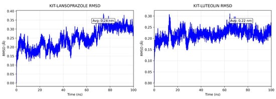 Comparison of backbone RMSD for KIT-Lansoprazole and KIT-luteolin complexes.
