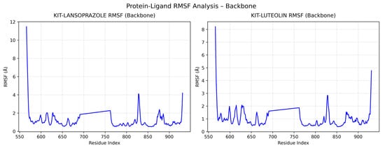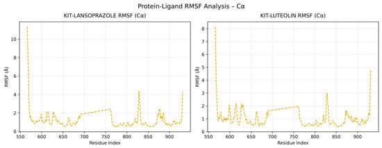 Comparison of all backbone residue fluctuations for KIT-Lansoprazole and KIT-luteolin complexes.