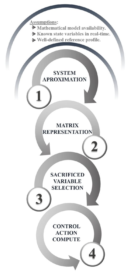 It is important to highlight that a key advantage of this technique is its versatility, as it can be applied to various systems, including both single-input multiple-output (SIMO) and multiple-input multiple-output (MIMO) configurations, provided the necessary information is available. Figure 2 summarizes the steps for implementing the linear-algebra-based controller.