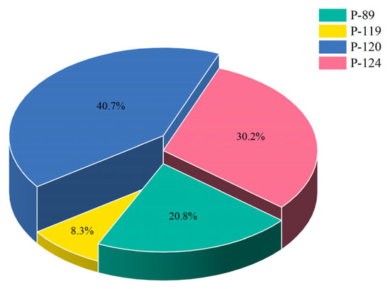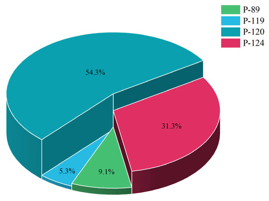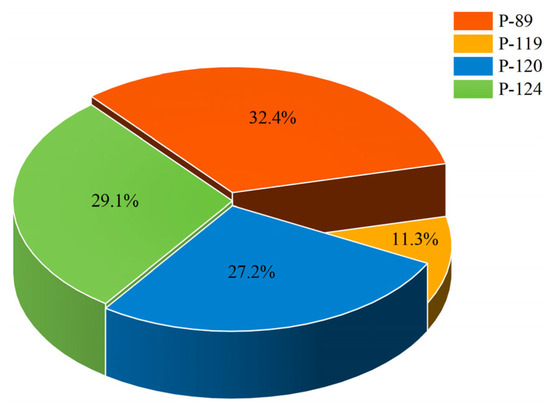 Producers are calculated by Equations (8) and (9) to obtain their respective production contribution weights in the well group. Specifically, the P-89 producer has the largest contribution to the production of the well group (32.4%) and exhibits the best production effect. The P-119 producer has the smallest contribution to the production of the well group (11.3%) and demonstrates the worst production effect, as depicted in Figure 6. The results are different from those obtained by measuring the production effect of a producer based on the single production index. The development effect of producers, influenced by various factors, is analyzed and judged from geology, development and engineering dimensions to objectively and quantitatively reflect the real production status of producers.