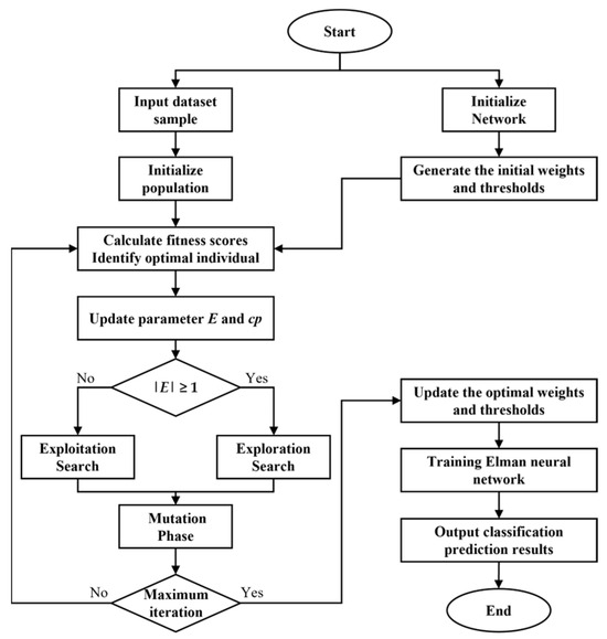 However, ENN also exhibits inherent limitations, particularly escaping from local optimum and convergence deceleration, ultimately resulting in low accuracy [24,25]. The primary factor contributing to this problem is the difficulty in obtaining the suitable weights and thresholds [26]. In order to overcome these weaknesses, it has become increasingly popular to combine Swarm Intelligence (SI), which is a stochastic optimization algorithm inspired by nature, with neural network to optimize weights and thresholds. In [27], the flamingo search algorithm is utilized to refine an enhanced Elman Spike neural network, thereby enabling it to effectively classify lung cancer in CT images. In [28], the weights, thresholds and numbers of hidden layer neurons of ENN are optimized by a genetic algorithm. Wang et al. [29] utilize the adaptive ant colony algorithm to optimize ENN and demonstrate its efficacy in compensating a drilling inclinometer sensor. Although the aforementioned methods of optimizing ENN via SI algorithms have demonstrated significant advantages across various fields, traditional classification methods still dominate the problem of process classification in Selective Laser Melting (SLM). Barile et al. [30,31] employed CNN to classify the deformation behavior of AlSi10Mg specimens fabricated under different SLM processes. Ji et al. [32] achieved effective classification of spatter features under different laser energy densities using SVM and Random Forest (RF). Li et al. [33] classified extracted melt pool feature data with Backpropagation neural network (BPNN), SVM and Deep Belief Network (DBN), thereby reducing the likelihood of porosity.