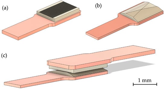 3D Model of our contact, (a) the anode, (b) the cathode, and (c) the assembled contact.