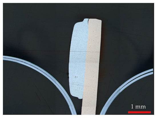 The contact surfaces were analyzed using a Keyence VK-X3000 3D Laser Scanning Microscope (Keyence, Mechelen, Belgium). High-resolution topographical images were acquired and processed using the manufacturer’s proprietary software, Keyence VK300 Multifile Analyzer (Version 1.5.7). To obtain detailed cross-sectional profiles of the contact wear, a resin molding technique was employed: the contacts were positioned upright within the resin mold and, after curing, progressively ground using a Struers Laboforce 100 disk grinder (Struers A/S, Ballerup, Denmark) with a series of abrasives until the contact center was exposed. Each inspection after 3000, 6000, and 9000 cycles was performed on a separate contact sample, as the destructive cross-sectional analysis prevented reuse of the same electrode. Non-destructive surface scans were performed on the same electrode prior to cross-sectional analysis. This method allowed precise measurement and visualization of subsurface erosion and material loss. The typical cross-sectional profile of the contact wear obtained using this methodology is illustrated in