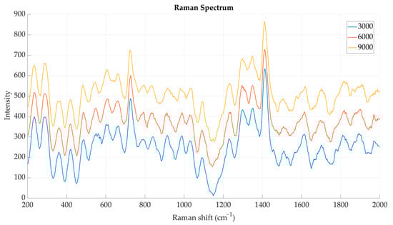 Raman spectrum after 3000, 6000, and 9000 uses.