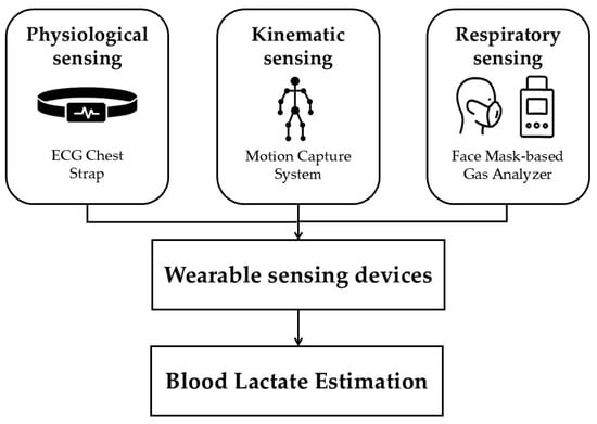 In this study, we developed a wearable multi-sensor system for non-invasive BLa estimation by integrating physiological, kinematic, and respiratory sensing modalities. The overall system architecture is illustrated in Figure 2.