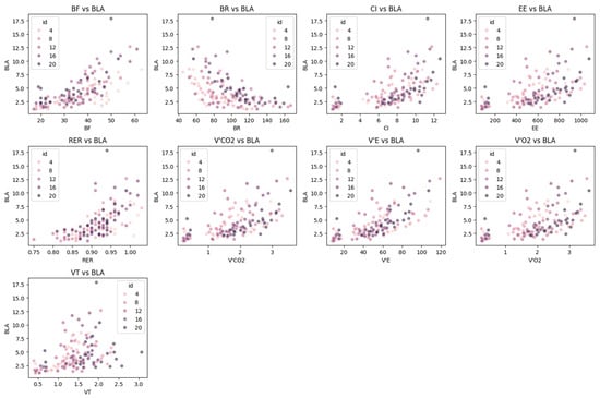 Scatterplots of respiratory indicators vs. BLa concentrations.