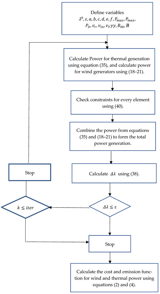 The demand and the emission constraints are added to the original cost function using Lagrange multiplier , resulting in Equation (25).