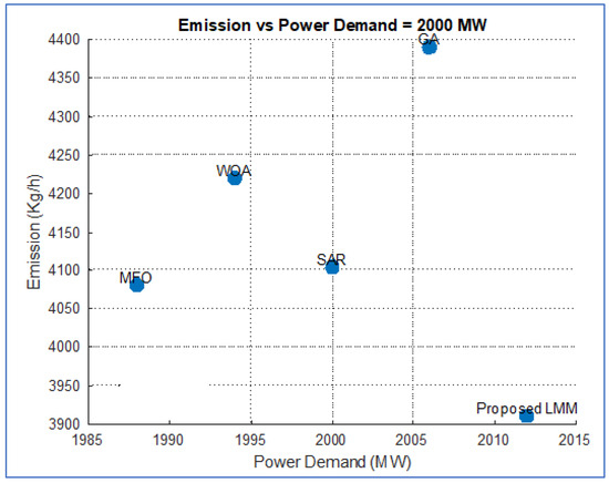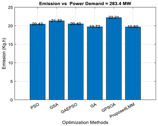 In [11], the researchers analyze the economic emission dispatch problem formulation, which involves the linear quadratic cost function of the thermal unit. The emission cost function is used in terms of the quadratic. Power balance and transmission loss are included as equality constraints, while real power operating limits for thermal generators are considered as inequality constraints. The bio-objective optimization problem is converted to a single-objective one by using Price Penalty Factors (PPFs) (h). The IEEE 30-bus system, which consists of six thermal generators, is used as a case study for this optimization problem. A Lagrange multiplier (classical optimization method) is used as an optimization algorithm to solve the economic emission dispatch problem. A significant optimization problem is converted into a two-stage dual problem with a master problem and subproblems using Lagrange multipliers between the two problems until the condition for optimality is achieved. The problem was simulated with different power demands of 410–700 MW. By monitoring the fuel and the emission as the change in power demand is carried out, it is concluded that the higher the power demand, the greater the increase in fuel cost and emissions. This was compared with existing algorithms found in the literature, and the method proved superior. It is recommended that the use of wind or solar can reduce the fuel cost and emissions for the economic emission dispatch problem.