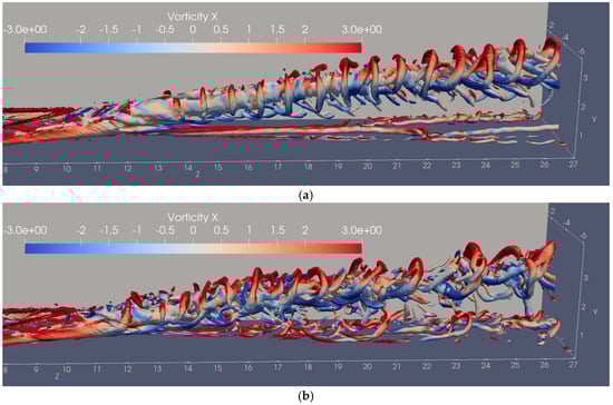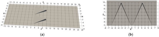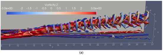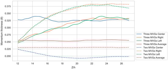 - The two-MVG case: Two MVGs are placed next to each other in the spanwise direction (X), see Figure 1. The computational domain spans (where h is the MVG height) in the spanwise (X), wall-normal (Y), and streamwise (Z) directions, respectively, with a grid resolution of 269 × 200 × 846.