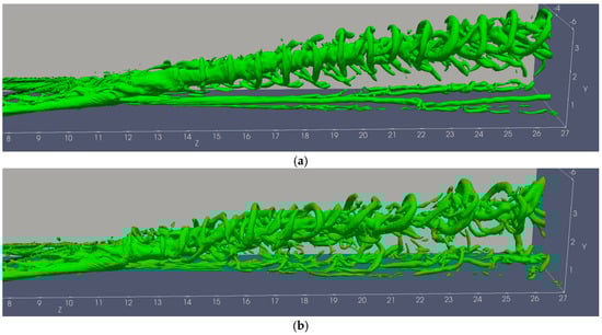 - Xue, D.; Chen, Z.; Jiang, X.; Fan, B. Numerical Investigations on the Wake Structures of Micro-Ramp and Micro-Vanes. Fluid Dyn. Res. 2014, 46, 015505. [Google Scholar] [CrossRef]