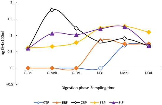 Additionally, 20 µL of the supernatant from each digestion time point was used for the determination of antioxidant capacity, following the procedure described in Section 2.4.2.