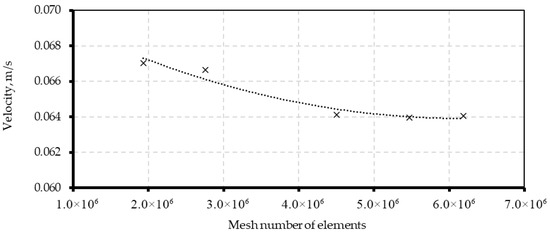 Figure 13, based on the calculations performed, shows an acceptable convergence of results for mesh sizes larger than 6 million cells, which also guarantees a reasonable level of quality. The size of the element that is considered to provide reliable results with the reasonable computational cost is 1 μm and 0.1 μm for maximum and minimum cell size, respectively.
