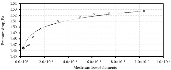 Figure 14 illustrates the effect of the number of elements on the pressure drop, demonstrating an asymptotic convergence of the results. The size of the element that is considered to provide reliable results with the reasonable computational cost is 0.01 μm minimum and 10 μm maximum what corresponds with the mesh of over 10