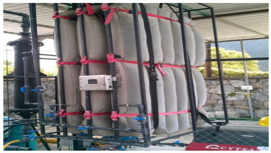 To address this issue, the present project developed an artificial intelligence-based system for a liquor company, aimed at minimizing the discrepancy between the electricity demand of the facility’s lighting systems and the electricity generated from methane biogas derived from the distillery’s own waste. To store the biogas, a cushion-based storage system was designed and implemented, capable of holding up to 400 L of biogas, as shown in Figure 4.