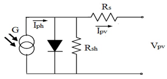 The primary source of current is the light-generated, or photogenerated, current (). The diode, defined by its saturation current () and ideality factor (), models the cell’s semiconductor junction. The exponential term is governed by the thermal voltage, which is a function of Boltzmann’s constant () and the junction temperature (), scaled by the number of cells in series . Finally, the parasitic series and shunt resistances ( and ) account for electrical losses within the cell.