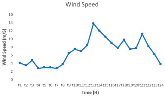 The hourly wind speed is shown in Figure 2. The demand response program has been taken into consideration for optimising the energy hub depicted in Figure 3 to minimise operating expenses. The energy hub operation was analysed using five case studies considering the availability of a demand response program. This study looks at the results of five different DR programs. The descriptions of a handful of case studies used in this investigation are used in this study. In the first and second scenarios, the impact of the energy hub’s inclusion in the DR program is assessed assuming a moderately high price for natural gas. Both the third and fourth scenarios provide an adequate operation schedule for the energy hub with and without participation in the DR project, presuming low natural gas prices. The final scenario involves the removal of CHP from the energy hub and an evaluation of the effects of carrier interactions for the duration of the DR program. The centre of energy in Figure 3 shows different hourly load demands for heat, electricity, and natural gas. The hourly electricity cost are also shown in Figure 4. The MILP model of the problem of optimising the energy hub while taking the DR program into consideration has been solved using the CPLEX 22.1.0 solution method in the GAMS 37.2.0. software. The numerical results for the various occurrences are independently analysed in the following sections.
