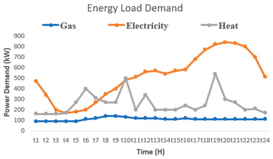 The smart energy hub’s 24 h requirements for power, heat, and natural gas [14].