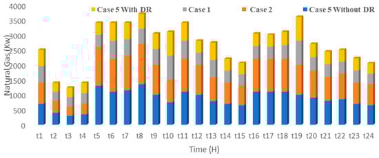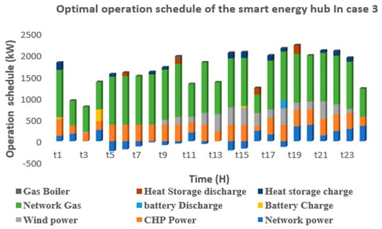 In Scenario 3, natural gas is consistently more affordable than electricity. Furthermore, as the energy hub cannot participate in DR initiatives, all demand must be met in line with the intended pattern. The graphical findings for Scenario 3 are shown in Figure 9.