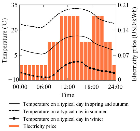 Variation in temperature and electricity price on typical days.